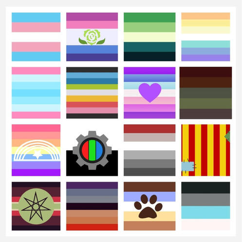 [[ transgender, sapphillean, arospec, genderfaun, transmasc, queer, T4T, zombiegender, xenogender, robotkin, rabies, clowngender, zombiekin, fagdyke, pupgender, robotgender]]